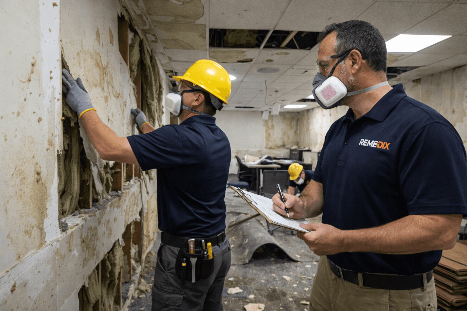 • Removal of damaged drywall, insulation, and flooring